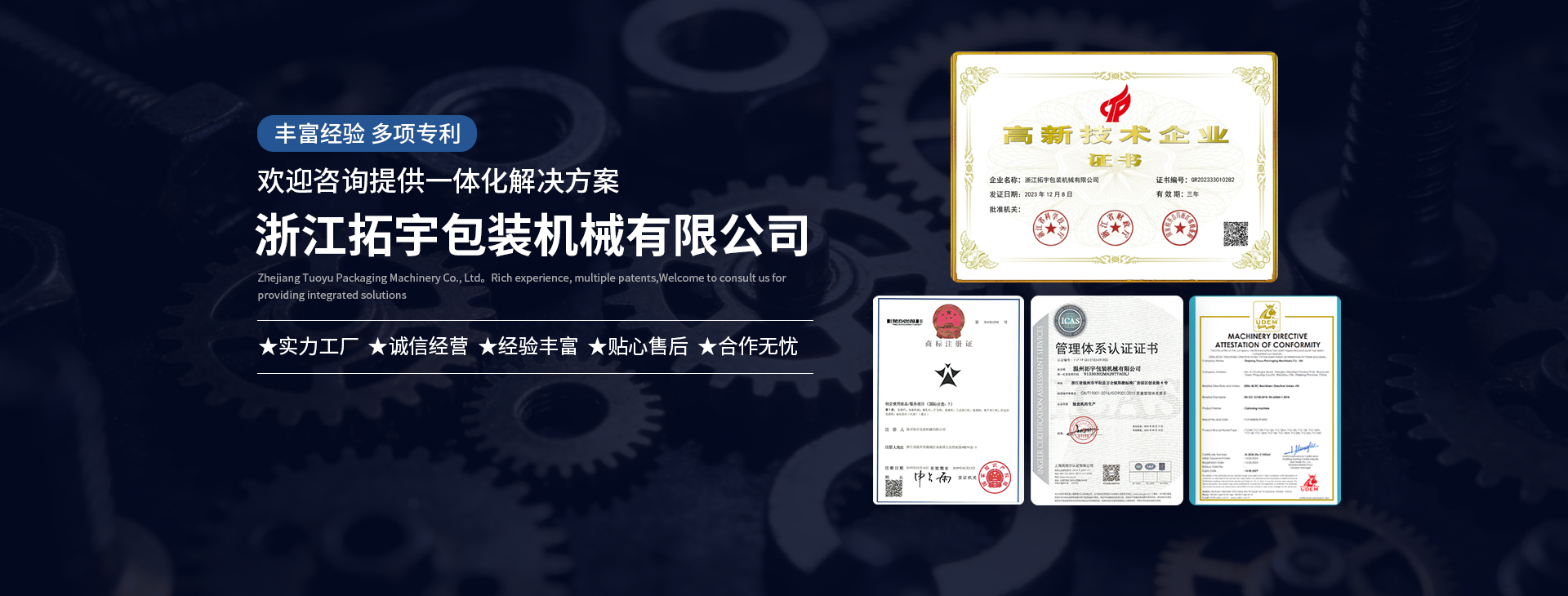 企業(yè)主要產(chǎn)品:多功能全自動臥式裝盒機(jī)、食品裝盒機(jī)、藥品裝盒機(jī)。浙江拓宇包裝機(jī)械有限公司將本著"以誠信為本,用戶至上、生存靠質(zhì)量、發(fā)展靠創(chuàng)新"的經(jīng)營理念;樹立"用戶需求為已任、客戶利益為初衷"的企業(yè)目標(biāo)。企業(yè)已通過質(zhì)量管理體系9001認(rèn)證,產(chǎn)品獲得歐盟CE認(rèn)證。